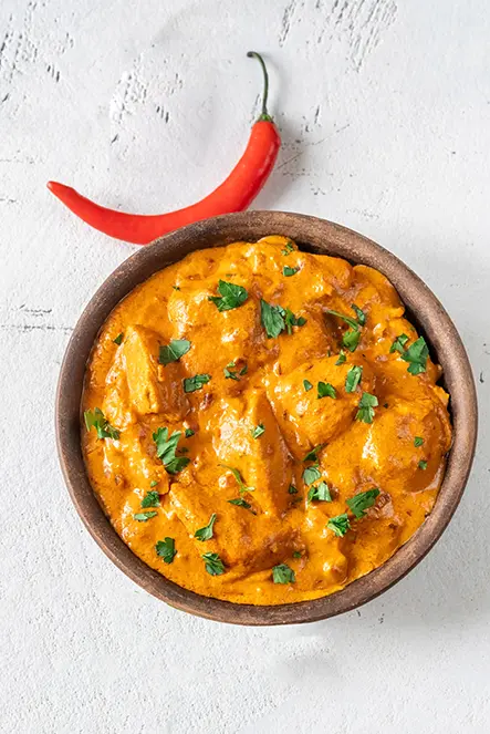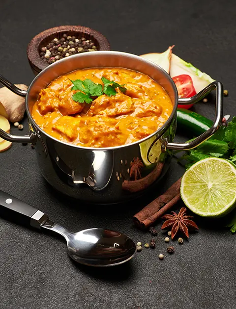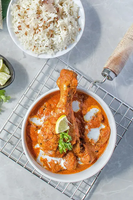 Chicken cooked with fresh tomatoes, peppers, and spices in a karahi pan, producing bold flavour and thicker sauce preferred by best Indian takeaway in Derby regular customers.
