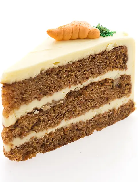 Moist carrot cake served as a simple dessert option, finished with light sweetness, suitable for takeaway orders adding a familiar ending to Indian meals in Derby evenings.