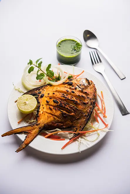 Tandoori favourites include Garlic Chicken Tikka, Mint Chicken Tikka, 1/4 Tandoori Chicken, Half Tandoori Chicken, and Tandoori Mix Grill. Chicken Shashlik and Tandoori Fish Shashlik suit grilled food fans. Tandoori King Prawns remain a premium choice.